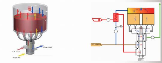 旋轉(zhuǎn)是蓄熱氧化系統(tǒng)RRTO,是在RTO的基礎(chǔ)上發(fā)展而來。較RTO比較有效的降低設(shè)備占地面積,節(jié)省空間。